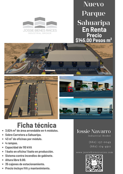 ![]() Conjunto 4 Naves 5,400 m² Con Espuela | ![]() Bodegas Con Espuela Carretera Sahuaripa |